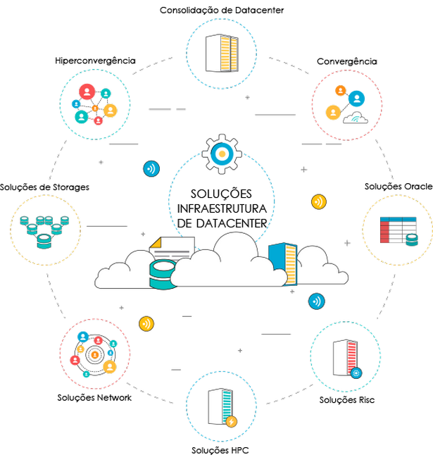 Nossas soluções de Data Center oferecem tecnologia e preparação do cliente para serviços em nuvem, virtualização, aplicativos e infraestruturas integradas.